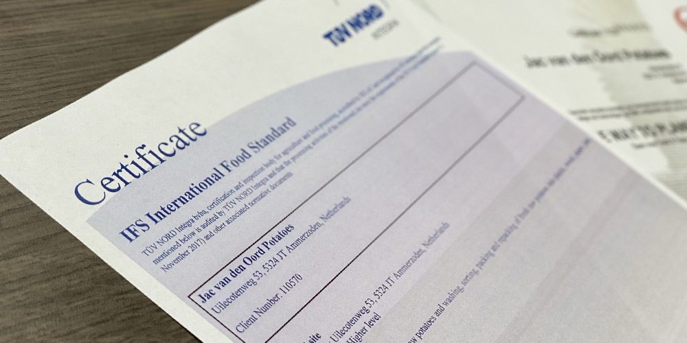 Jac van den Oord Potatoes behaalt wederom IFS Food Higher Level certificaat!