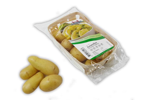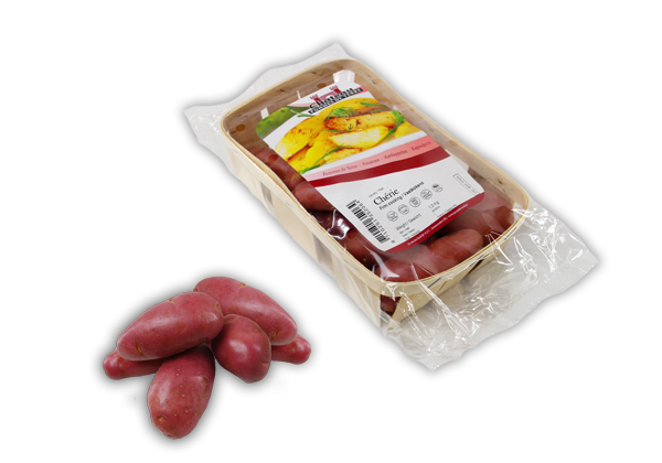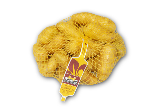 – Merk: Chateau Pommes de Terre, rassen: Charlotte, La Ratte, Roseval, Amandine of Franceline, verpakking: 1,0kg houten schaaltjes of netzakje