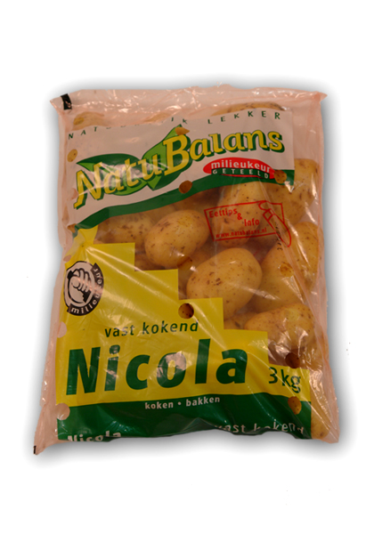 – Merk: Natubalans, rassen: Nicola; Bildtstar, verpakking: 2,5kg of 3,0kg zak (pak uit de zak de wat fijnere aardappelen)